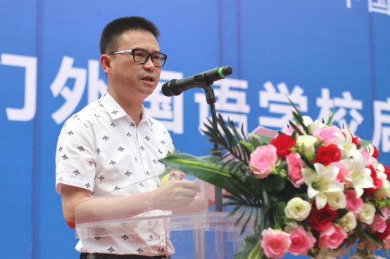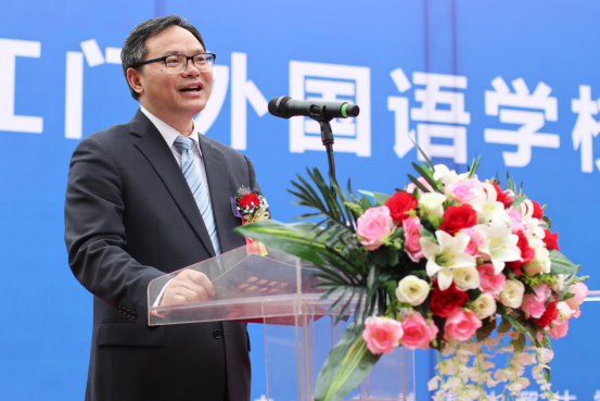 广东外语外贸大学副校长刘建达出席启动仪式并致辞。他说道,广外附设江门外校是我校2018年重点打造的高端基础教育项目之一。江门市委市政府、新会区委区政府对学校的创办给予了大力的支持和信任。江门市名冠教育投资有限公司为广外江门外校的发展提供了坚实的保障。广外选派了曹旭飞校长和陶俊副校长作为首批管理团队成员。有了政府的支持和企业的保障,有了广外团队的专业化管理,广外江门外校一定会打造成为一所优质化、特色化、国际化的精品学校,成为广东省“珠西战略”区域内一颗耀眼的明珠。